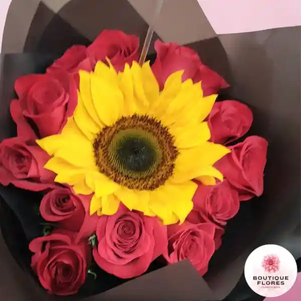 rosas rojas y girasol