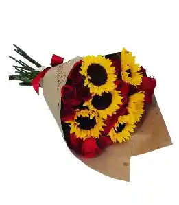 Bouquet de 12 rosas rojas y 5 girasoles. Perfecto para regalos, detalles, aniversarios, cumpleaños y fechas especiales de color Multicolor ideal para el Felicitaciones