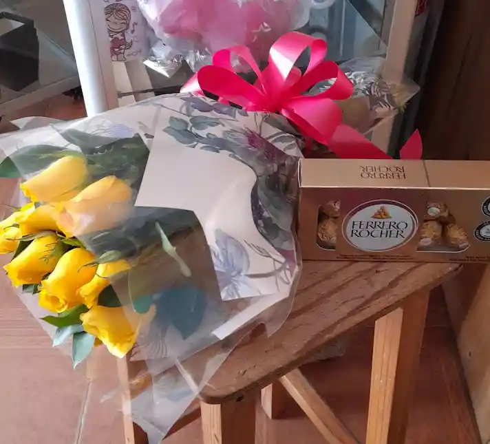 INCLUYE: 8 Rosas Follaje Moño decorativo Ferrero Rocher x8 El color de las rosas es personalizable según disponibilidad, puedes escribirnos por nuestro chat. Para el mensaje de la tarjeta puedes dejarla en nuestro chat.