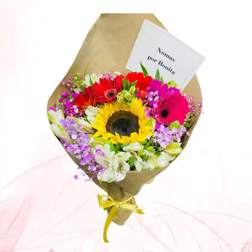 Un ramo lleno de color y frescura. Incluye una selección de flores surtidas de temporada (puede variar según disponibilidad), acompañadas de follaje natural y una presentación elegante, ideal para regalar en cualquier ocasión.