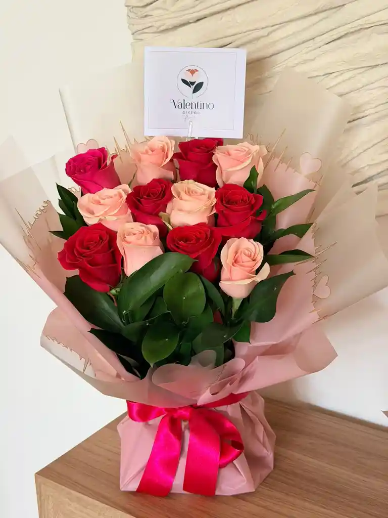 Un detalle elegante y lleno de significado. Este hermoso ramo combina rosas fucsias intensas con delicadas rosas rosadas, creando un contraste único y sofisticado. Envuelto en papel premium con acabados románticos y lazo satinado, es perfecto para sorprender en cualquier ocasión especial. Incluye tarjeta personalizada.