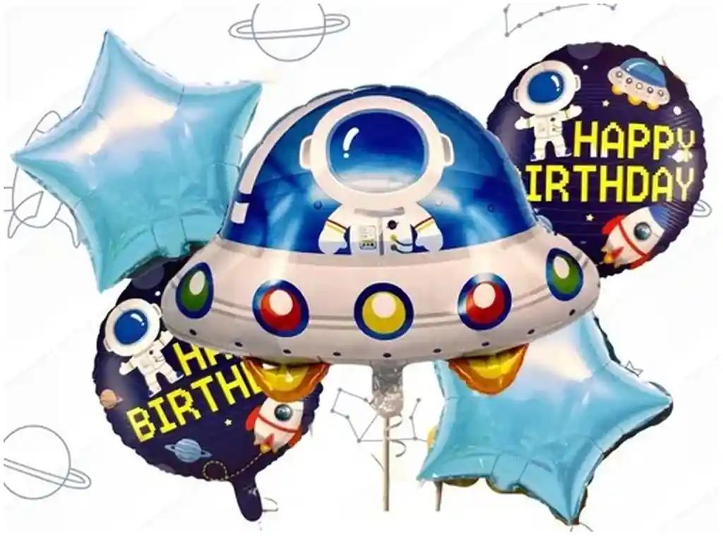 *********************GLOBOS Y PELUCHES MASMELO********************* Por tu compras llevas: 1 Bouquet temática espacio exterior astronauta nave espacial 60x52 cm 2 Globo circular metalizado temática espacial feliz cumpleaños o happy birthday 45 x 45 cm 2 Globo estrella azul metalizada 45 x 45 cm 1 pitillo para inflar globos *Los globos se entregan desinflados, tu compra no incluye el montaje ni la decoración, el servicio de armado no lo tenemos disponible. sin embargo te damos todas las instrucciones para hacer de modo profesional. Si deseas adicionar otros articulos a tu compra puedes escribirnos, recuerda que Somos Globos y Peluches Masmelo ;) - En ciudades fuera de Bogotá despachamos para el mismo día si compras antes de las 11AM (no incluye festivos) - En Bogotá despachamos para el mismo día, si haces el pedido antes de las 4PM (no incluye festivos)