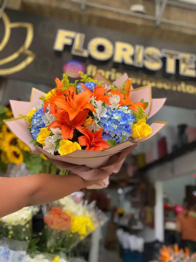 Hermoso Bouquet con gran variedad de flores ( Rosas, Lirios, Hortensia, Atromelia y follajes)