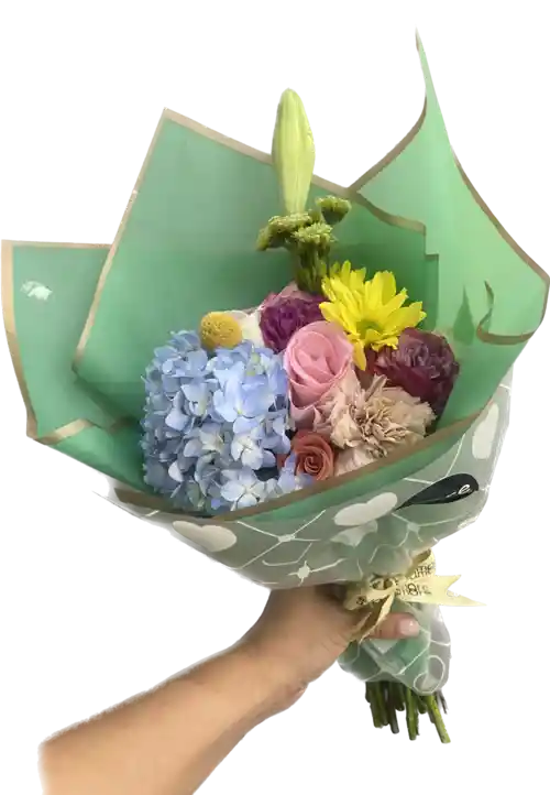 Un bouquet muy especial elaborado con un mix de una gran selección de flores frescas. - aproximadamente 12 tallos. Una experiencia de diferentes colores, texturas y aromas. Nuestro bouquet llega diseñado, con sus tallos pelados; listo para ubicar en el jarrón de tu espacio. Ten presente que todos nuestros Arreglos Florales son diferentes y nacen de la creación espontánea a partir de la disponibilidad de flor, por eso no verás dos iguales.