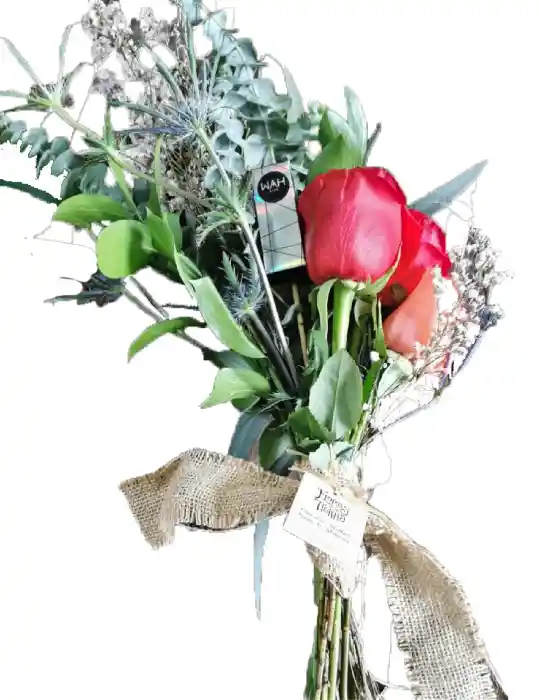 Brillo más 3 rosas más follajes. El color de la flor será según disponibilidad en tienda.