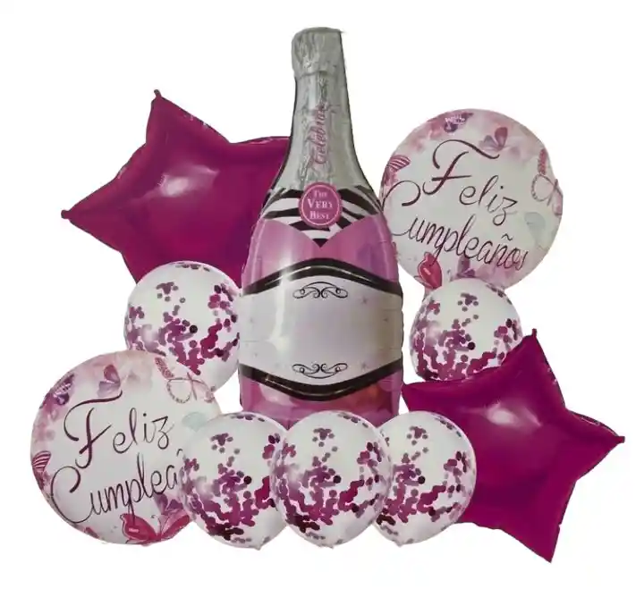 Funciones y Detalles JUEGO DE 10 PIEZAS: •1 Globo XXL Botella de Champagne (aprox. 95 x 45 cm), •2 Globos de lámina Feliz Cumpleaños (aprox. 45 cm), •2 Globos Estrella Fucsia (aprox. 45 cm) •5 Globos de Látex de Confeti (aprox. 30 cm) PARA EL CUMPLEAÑOS momentos inolvidables de Sorprende al cumpleañero o cumpleañera con este elegante juego de globos. Frota los globos de confeti contra una prenda de vestir para crear una carga estática en el aire. El confeti se pegará al interior de los globos. PAJA DE INFLADO INCLUIDA: ¡Incluye las varilla de inflado, lista para su uso inmediato! AIRE Y HELIO: Los globos de lámina pueden llenarse con helio o aire. Los globos son rellenables y reutilizables. FÁCIL DE FIJAR: Los globos están equipados con una pestaña para su fijación. Los globos llenos de helio se mantienen así en su sitio. Puedes dejar que los globos llenos de aire cuelguen del techo. POR FAVOR AL REALIZAR LA COMPRAR ESCRIBIR EL COLOR QUE DESEAS