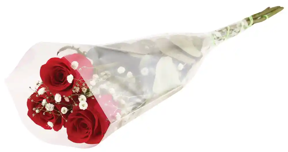 Bouquet x 3 Rosas Rojas + Gypso + envoltura plástica. Perfecto para regalos, detalles, aniversarios, cumpleaños, Día de la madre y fechas especiales