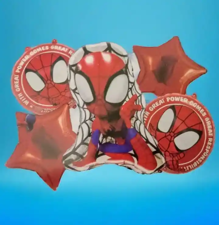 "¡Celebra con emoción y estilo con nuestro bouquet de 5 globos metalizados de Spider-Man! Deja que la esencia del superhéroe favorito de todos llene el aire mientras estos globos gigantes dan vida a la fiesta. Desde los vibrantes colores hasta la imagen icónica de Spider-Man, cada globo es una explosión de diversión y aventura. Ya sea para una fiesta de cumpleaños, una reunión temática o simplemente para alegrar el día de alguien especial, este bouquet de globos es la elección perfecta para llevar la emoción de Spider-Man a nuevas alturas. ¡Deja volar la imaginación y haz que cada momento sea épico con nuestro bouquet de globos Spider-Man!"