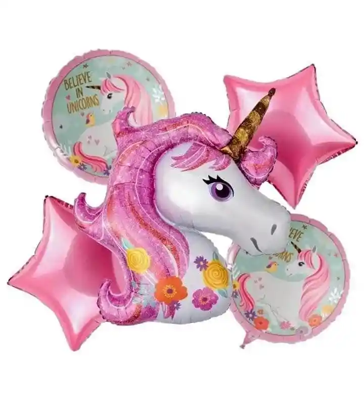 El paquete incluye: 5 unidades, divididas en 3 estilos, haciendo que tu fiesta esté llena de color y diversión. Perfecto para fiestas de cumpleaños con temática de UNICORNIO. Materiales de alta calidad: los globos están hechos de película de aluminio de alta calidad que es seguro y no tóxico. No es fácil de romper, tiene un brillo metálico y tiene un color uniforme. MEDIDAS APROXIMADAMENTE 90CM X 58CM