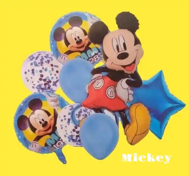 Bouquet X 8 Globos Metalizados Y Latex Mickey Mouse Late Por tu Compra llevas 4 Globos Metalizados y 4 Globos x •1 Globo Mickey Mouse Metalizado 70X50cm •1 Globo Estrella 45X45cm •2 Globos Metalizados Estampado •4 Globos Latex Nota: •Los Globos se entregan desinflados •Son Aptos para inflar con Helio