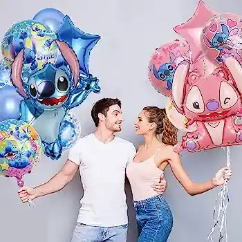 Descripción 10 globos de fiesta de Stitch para niños y niñas, decoraciones de fiesta de cumpleaños. Nuestros globos de papel de aluminio de dibujos animados de STICH se convertirán en tu mejor decoración de fiesta para el cumpleaños de tus hijos. Se ven muy lindos. Los diferentes estilos de globos de fiesta de punto azul y rosa se convertirán en el punto culminante de tu fiesta. Increíble para fiestas de cumpleaños, baby shower, fiestas familiares etc. Estos bonitos globos se pueden utilizar para decorar todo tipo temáticas para niñas o niños, Paquete incluye: • 10 piezas . 1 globo de aluminio gigante azul: 62 cm • 1 globo de aluminio gigante rosa: 58 cm • 4 globos redondos de aluminio: 45x45cm • 4 globos 2 Estrella Azul 2 Corazón Rosado 45x45,cm Consejos: No lo infles demasiado, la tasa de inflado recomendada es del 80% al 90%.