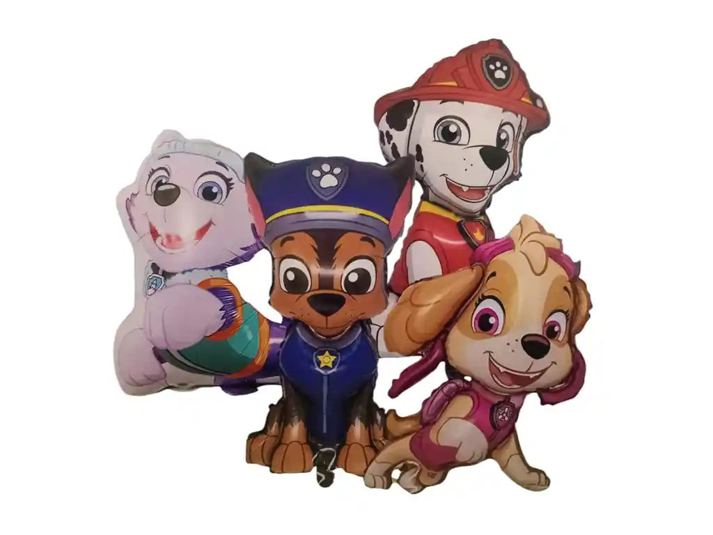 Bouquet X4 Globos Metálizados Patrulla Canina Paw Patrol •1 Globo Marshall 72x44cm •1 Globo Skye 62x53cm •1 Globo Chase 71x44cm •1 Globo Everest 54x44cm Nota: •Los Globos vienen desinflados •Se pueden inflar con Helio