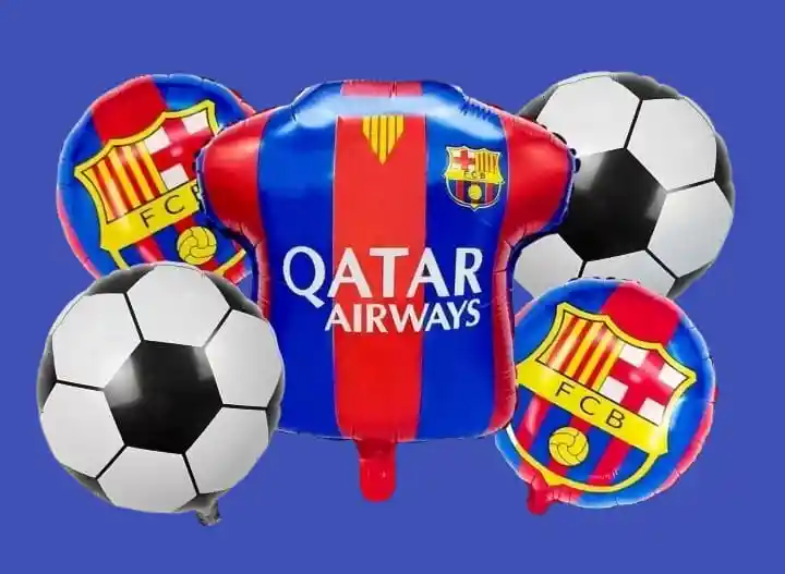 Por tu compra te llevas: •1 Globo Camiseta Barcelona 65x70cm •2 Globos Balones 45 x 45cm •2 Globos Redondo Estampado 45 x 45 cm Tener en Cuenta: •Los Globos se envían Desinflados