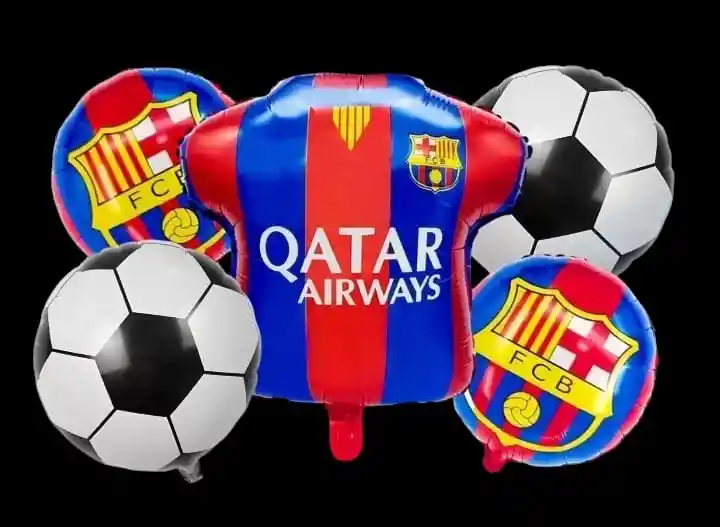 Por tu compra te llevas: •1 Globo Camiseta Barcelona 65x70cm •2 Globos Balones 45 x 45cm •2 Globos Redondo Estampado 45 x 45 cm Tener en Cuenta: •Los Globos se envían Desinflados