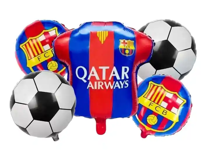 Por tu compra te llevas: •1 Globo Camiseta Barcelona 65x70cm •2 Globos Balones 45 x 45cm •2 Globos Redondo Estampado 45 x 45 cm Tener en Cuenta: •Los Globos se envían Desinflados