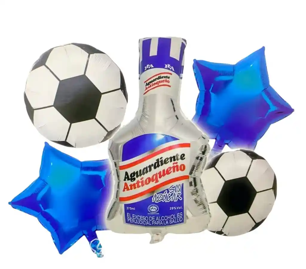 Set de 5 globos metalizados con diseño Botella aguardiente antioqueño, ideales para decorar fiestas temáticas y crear un ambiente lleno de fantasía y color. Por tu compra llevas: •1 Globo Botella: 60x50cm •2 Estrellas: 45x45cm •2 Globos redondos Balón: 45x45cm IMPORTANTE! TENER EN CUENTA: •Los globos vienen desiflados •Globos metalizados con garantía (antes del inflado) •La garantía aplica únicamente si el globo presenta un defecto visible antes de ser inflado, como: •Sellado defectuoso. •Orificios visibles sin haber sido manipulado. •Falla evidente en la unión del material (únicamente sin inflar). •El globo debe ser entregado en las mismas condiciones en que fue recibido: sin inflar, limpio y sin señales de manipulación. ❌ Globos sin garantía…