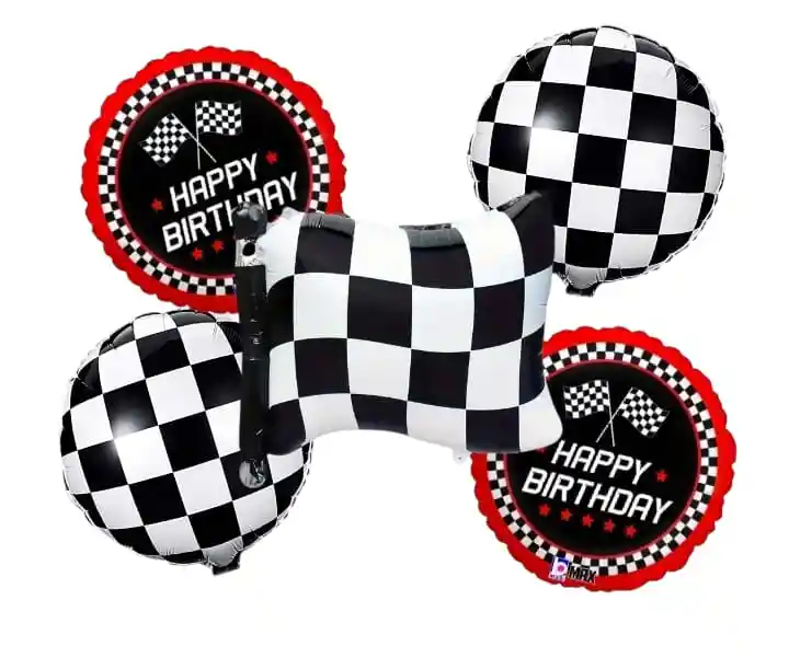 DECORA TU FIESTA Y VIVE UN MOMENTO INOLVIDABLE!! Por la compra llevas: •1 Globo Bandera de Meta (60x54cm) •4 Globos Redondo 45x45cm C/U Nota Los Globos se envían Desinflados