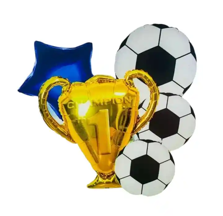 Materiales de alta calidad: los globos están hechos de película de aluminio de alta calidad que es seguro y no tóxico. Brillo metálico y color uniforme. Set de globos 1 copa 1 estrella 3 pelotas de futbol