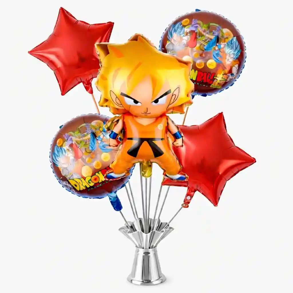 Bouquet de globos metalizados ideal para decoración de fiestas infantiles con temática anime. Incluye figura principal y globos complementarios en forma redonda y de estrella, perfectos para mesas principales, regalos sorpresa o decoración de cumpleaños. Colores vivos, acabado brillante y excelente presencia visual para fotos y ambientación de eventos. Incluye: •1 globo metalizado figura principal Gokú 60x45cm •2 globos metalizados redondos: 45x45 CM temáticos •2 globos metalizados estrella: 45x45 CM Importante: ⚠️ Los globos se entregan desinflados ⚠️ Solo incluye los globos, Otros elementos de ambientación en las imágenes no están incluidos ⚠️ Requieren aire o helio según el uso deseado