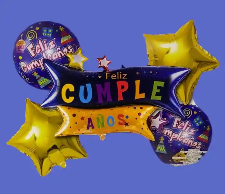 Bouquet X5 Globos Metálizados FELIZ CUMPLEAÑOS •1 Globo Feliz Cumpleaños 55x54cm •2 Globos Estrella 45x45cm •2 Globos Redondos 45x45cm Nota: •Los Globos vienen desinflados •Se pueden inflar con Helio