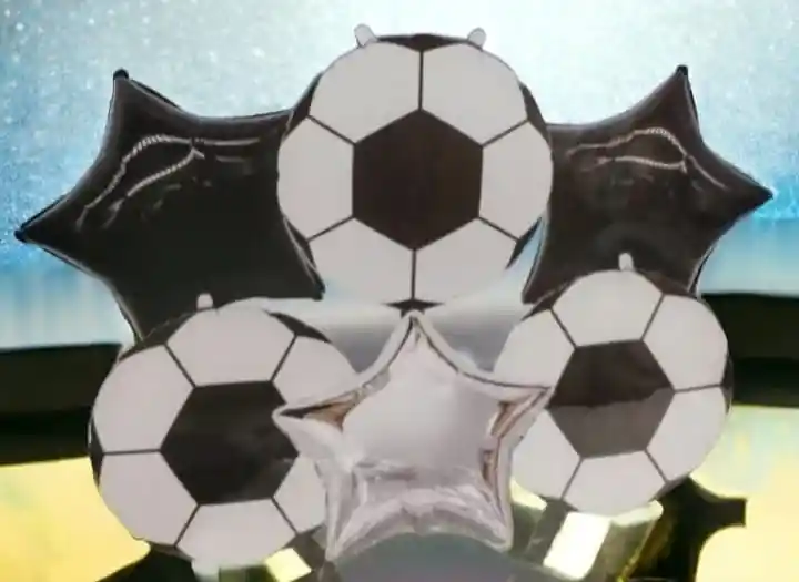 Bouquet de fútbol, es una decoración perfecta para los fanáticos del Futbol. Incluye: 3 Globos metalizados en forma de Balón 2 Globos metalizados en forma de estrella Nota: •Los Globos vienen desinflados •Se pueden inflar con Helio