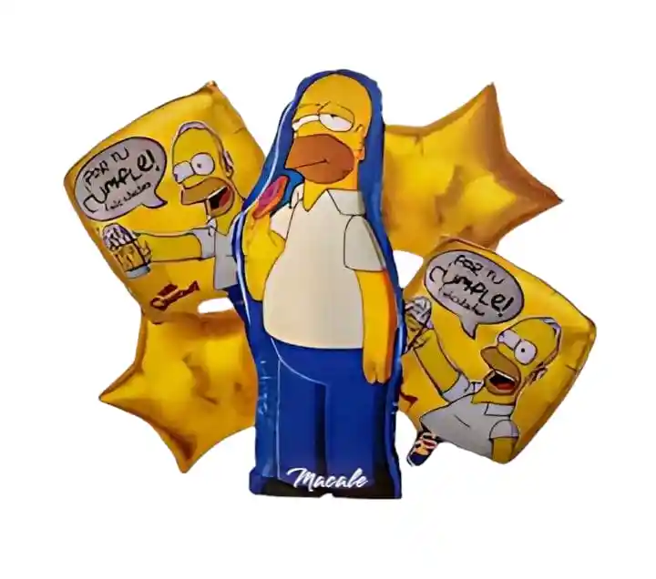 Globos metalizados X5 Unidades Homero Simpson Por la Compra llevas: •1 Homero Simpson Medidas: Alto: 98cm Ancho: 70cm •2 Globos Estrellas 45x45cm •2 Globos Cuadrados 55x55cm NOTA LOS GLOBOS SE ENVÍAN DESINFLADOS