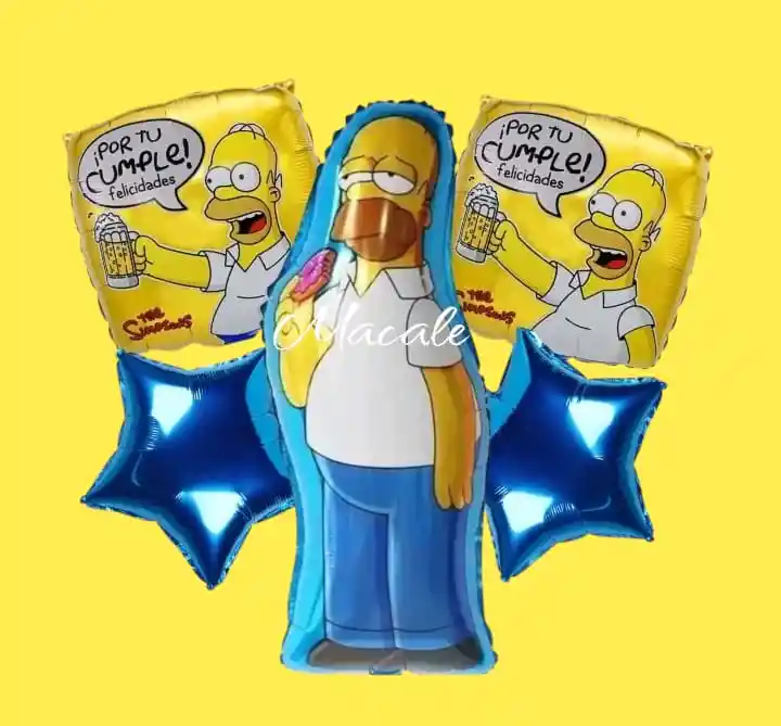 Globos metalizados X5 Unidades Homero Simpson Por la Compra llevas: •1 Homero Simpson Medidas: Alto: 98cm Ancho: 70cm •2 Globos Estrellas 45x45cm •2 Globos Cuadrados 55x55cm NOTA LOS GLOBOS SE ENVÍAN DESINFLADOS