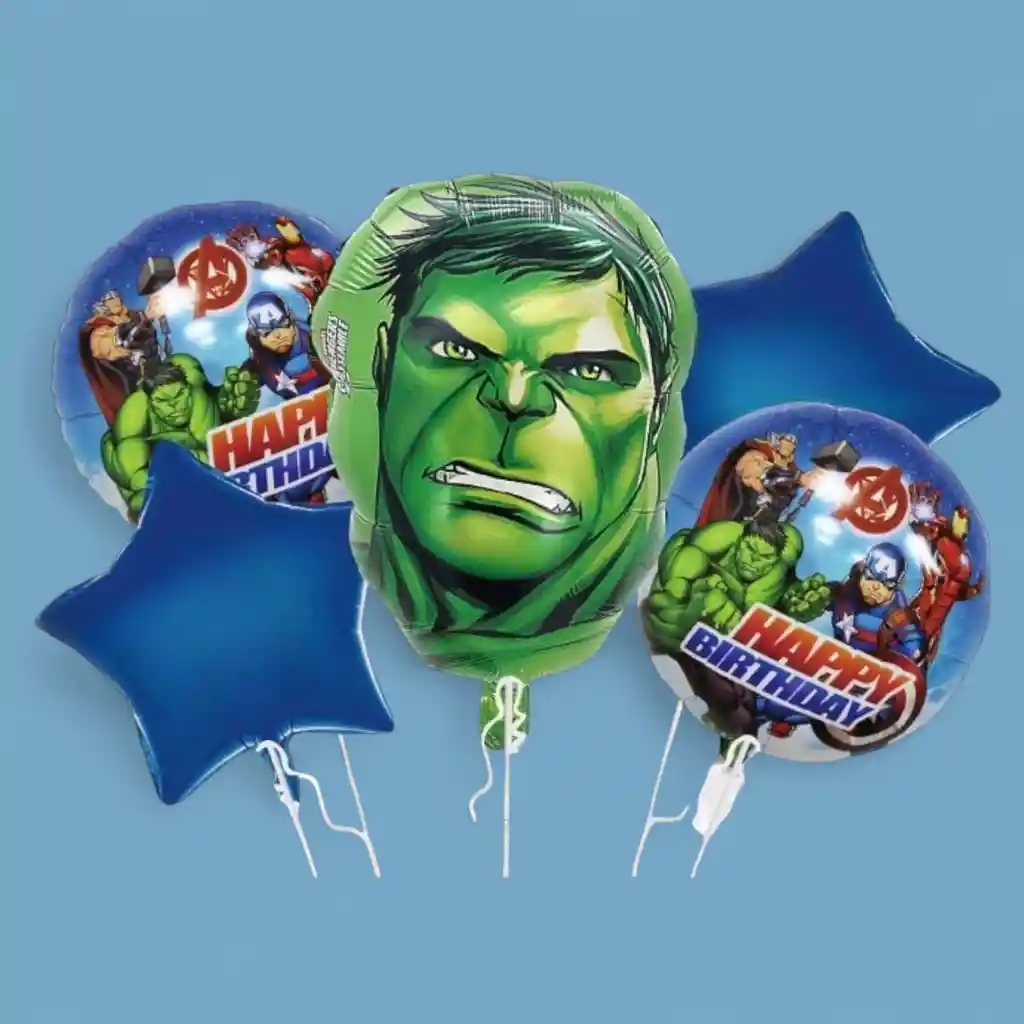 DECORA TU FIESTA Y VIVE UN MOMENTO INOLVIDABLE!! Por la compra llevas: •1 Globo HULK (50.8x45cm) •2 Globos Redondo 45x45cm c/u •2 Estrellas Metálizadas 45x45cm Nota Los Globos se envían Desinflados