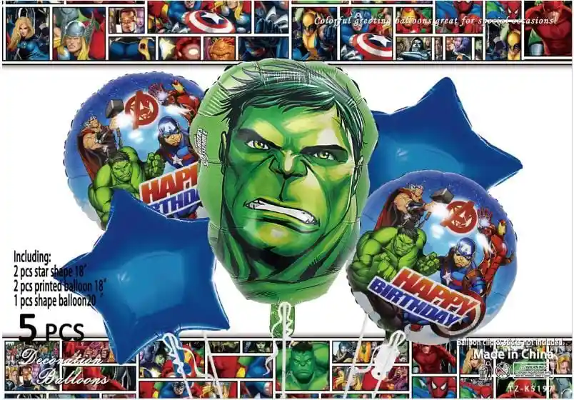 DECORA TU FIESTA Y VIVE UN MOMENTO INOLVIDABLE!! Por la compra llevas: •1 Globo HULK (50.8x45cm) •2 Globos Redondo 45x45cm c/u •2 Estrellas Metálizadas 45x45cm Nota Los Globos se envían Desinflados