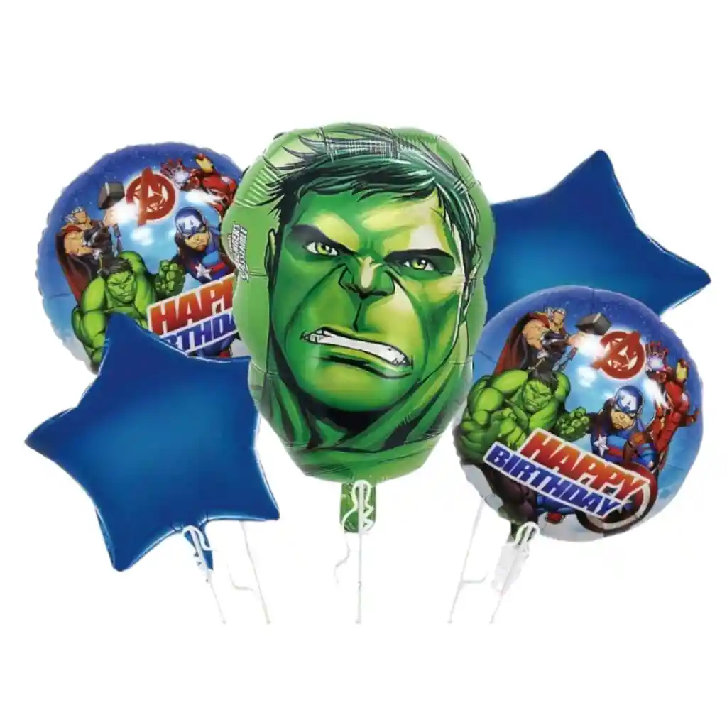 DECORA TU FIESTA Y VIVE UN MOMENTO INOLVIDABLE!! Por la compra llevas: •1 Globo HULK (50.8x45cm) •2 Globos Redondo 45x45cm c/u •2 Estrellas Metálizadas 45x45cm Nota Los Globos se envían Desinflados