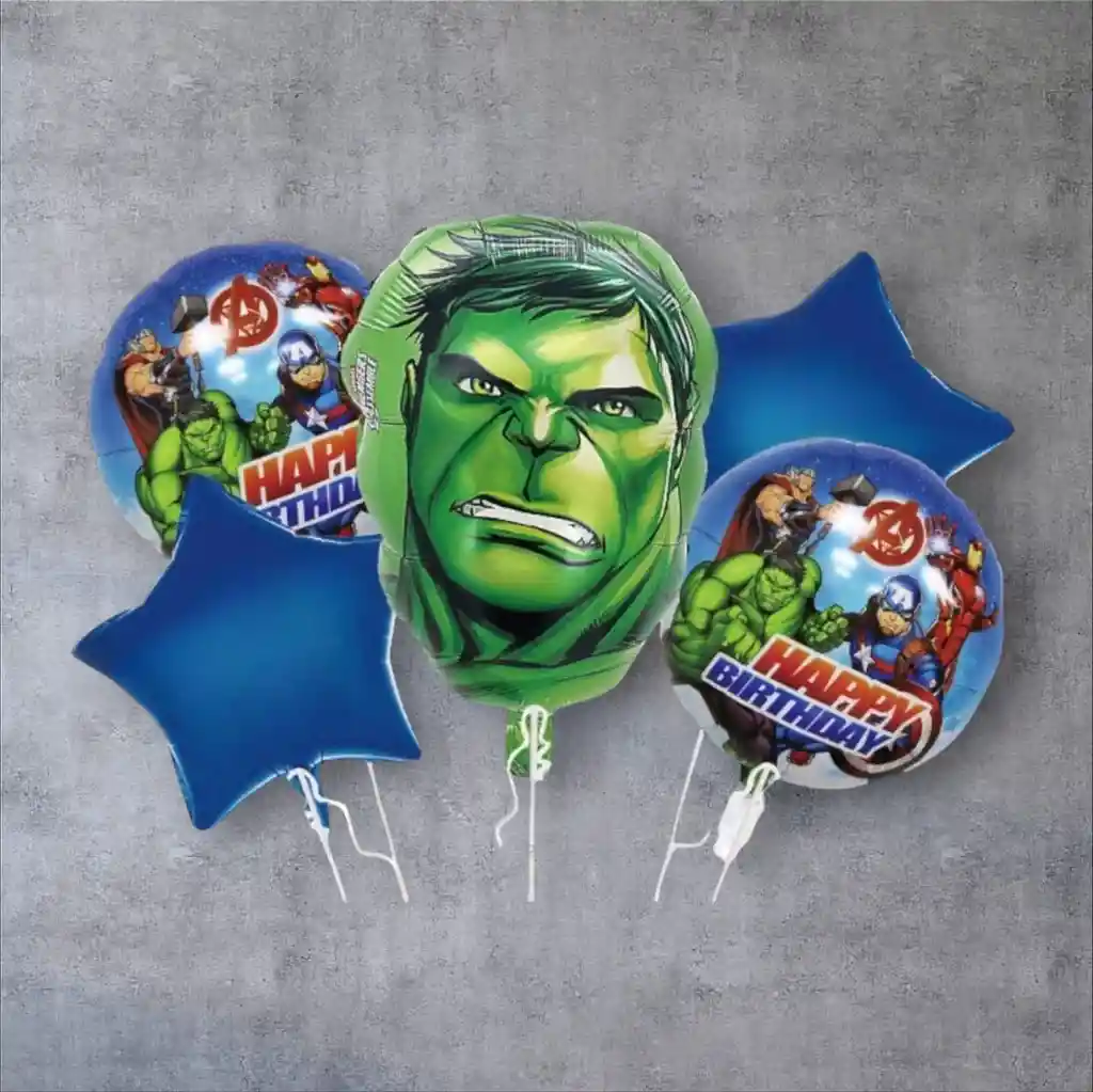 DECORA TU FIESTA Y VIVE UN MOMENTO INOLVIDABLE!! Por la compra llevas: •1 Globo HULK (50.8x45cm) •2 Globos Redondo 45x45cm c/u •2 Estrellas Metálizadas 45x45cm Nota Los Globos se envían Desinflados
