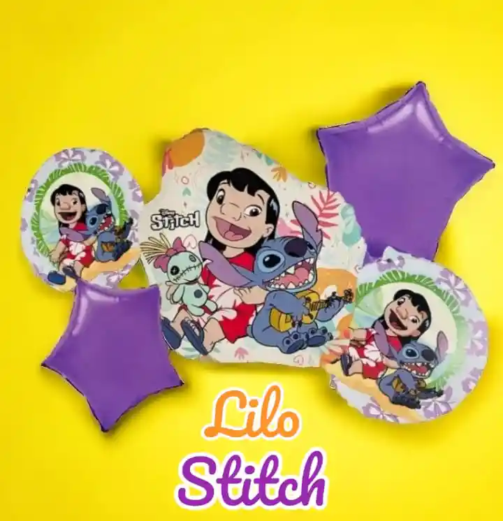 Bouquet X5 Globos Metalizados Lilo Y Stitch