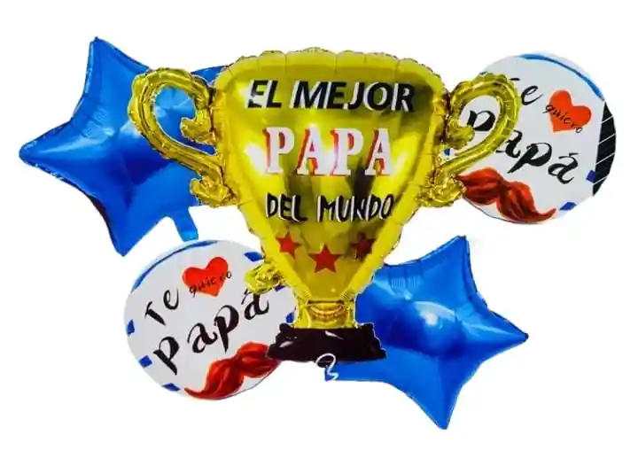 Bouquet X5 Globos Metálizados Para Papá Copa Dorada