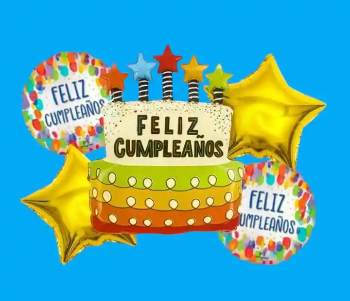 DECORA TU FIESTA Y VIVE UN MOMENTO INOLVIDABLE!! Por la compra llevas: •1 Globo Pastel (60x50cm) •2 Globos Redondo Feliz Cumpleaños 45x45cm C/U •2 Estrellas Metálizadas 45x45cm Nota Los Globos se envían Desinflados