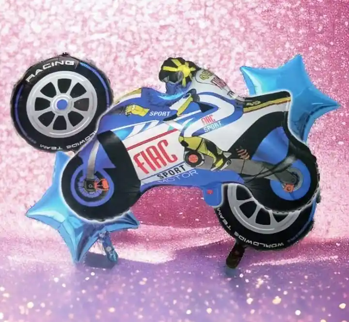 Bouquet X5 Globos Metalizados RACING Por tu compra llevas: •1 Globo Moto: 65x 50 cm •4 Globos Redondos: 45x45cm TENER EN CUENTA: •SE PUEDEN INFLAR CON AIRE NORMAL Y HELIO •LOS GLOBOS SE ENTREGAN DESINFLADOS