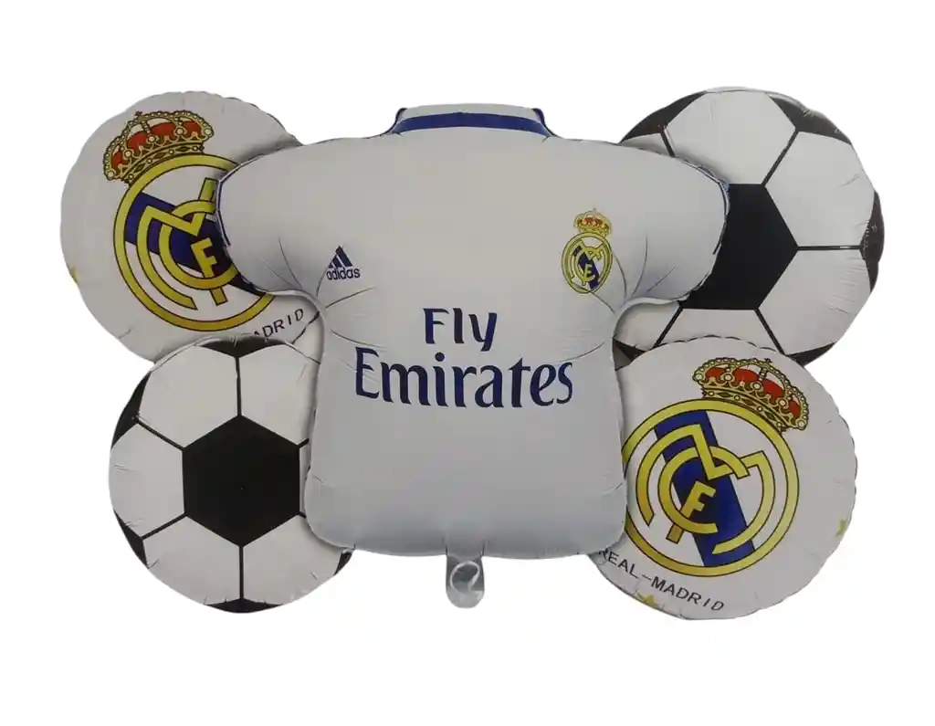 Bouquet X5 Globos Por tu Compra llevas: •Camiseta FLY EMIRATES: 65x65cm •2 Globos Balón de Fútbol: 45x45cm •2 Globos Redondo 45x45cm NOTA: •Los Globos se pueden inflar con Helio •Los Globos Se envían Desinflados
