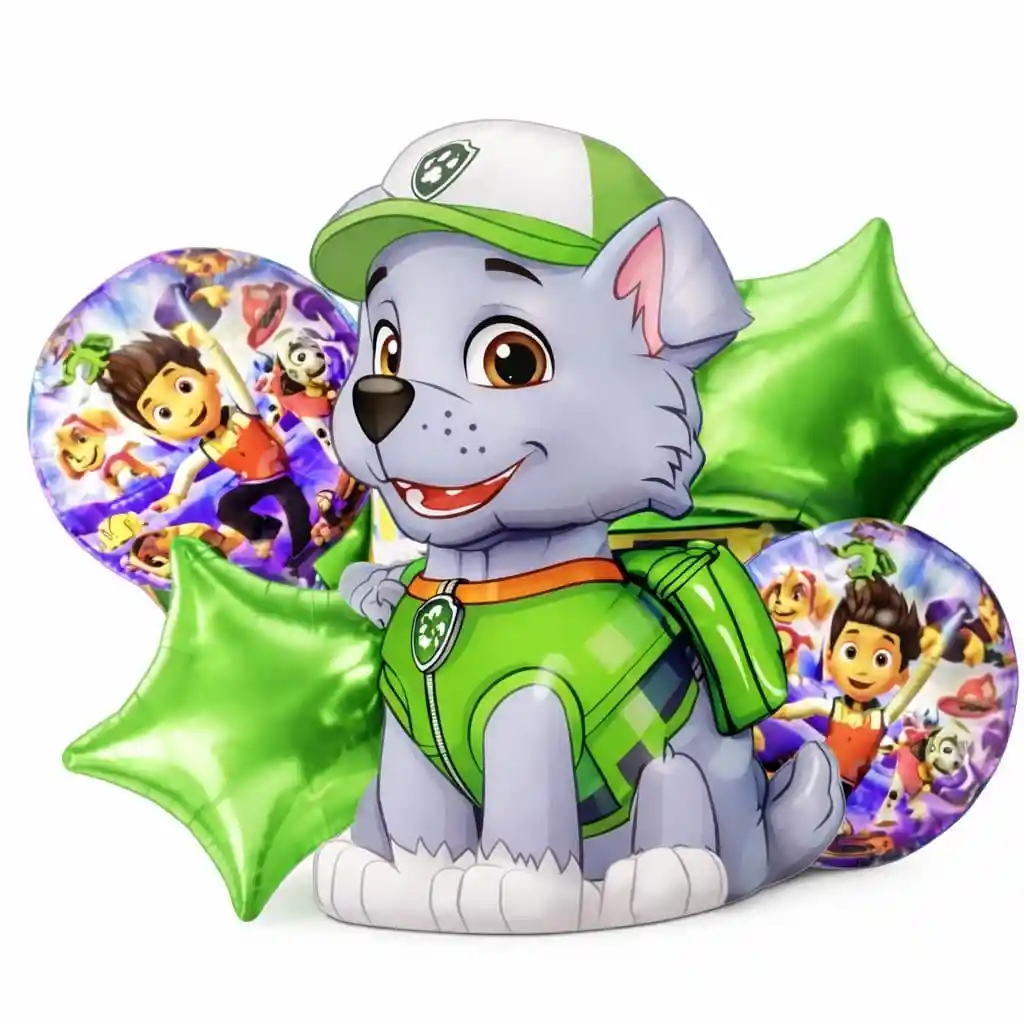 Hermoso set de globos metalizados temática Rocky Paw Patrol con Huellitas, ideal para decorar cumpleaños, fiestas infantiles y celebraciones especiales. Diseño tierno y llamativo que luce perfecto en fotos y mesas de celebración. ✨ Colores vivos y acabado metalizado ✨ Ideal para decoración de fiesta temática ✨ Perfectos para combinar con arreglos y bouquets Contenido del paquete: ✔️ 5 globos metalizados Importante: * Los globos se entregan desinflados * No incluye base, porta globos, cintas ni accesorios * Los elementos adicionales en la imagen son solo ambientación Por la compra llevas: •1 Globo Rocky 60x50cm •2 Globos Estrellas 45x45cm c/u •2 Globos Redondos Metalizados 45x45cm