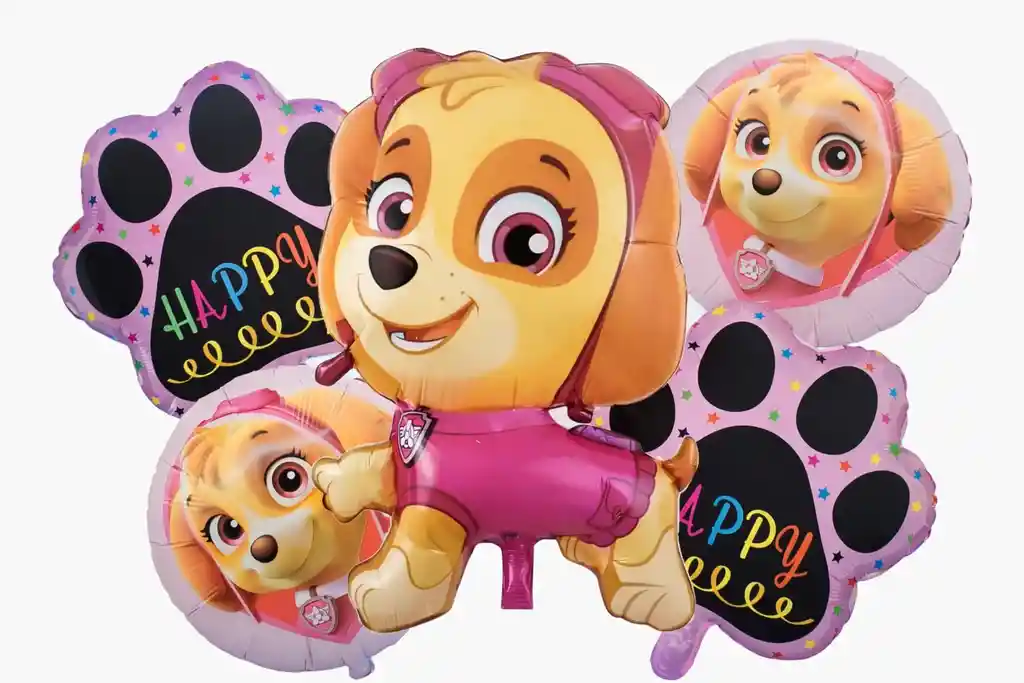Hermoso set de globos metalizados temática Skye Paw Patrol con Huellitas, ideal para decorar cumpleaños, fiestas infantiles y celebraciones especiales. Diseño tierno y llamativo que luce perfecto en fotos y mesas de celebración. ✨ Colores vivos y acabado metalizado ✨ Ideal para decoración de fiesta temática ✨ Perfectos para combinar con arreglos y bouquets Contenido del paquete: ✔️ 5 globos metalizados Importante: * Los globos se entregan desinflados * No incluye base, porta globos, cintas ni accesorios * Los elementos adicionales en la imagen son solo ambientación Por la compra llevas: •1 Globo Skye 50x45cm •2 Globos huellitas 45x45cm c/u •2 Globos Redondo Metálizados 45x45cm
