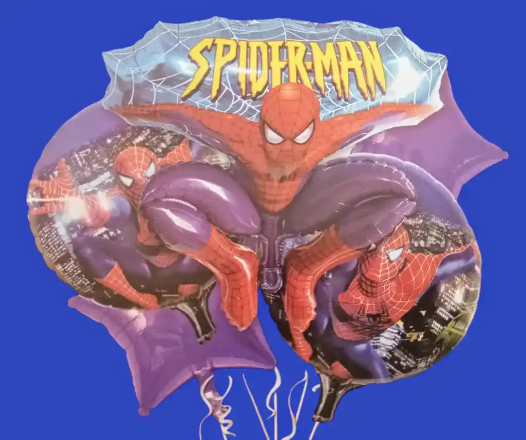 Bouquet X5 Globos Metálizados Spiderman (Hombre Araña) •1 Spiderman (Hombre Araña) 74x64cm •2 Globos Estrella 45x45cm •2 Globos Redondos 45x45cm Nota: •Los Globos vienen desinflados •Se pueden inflar con Helio