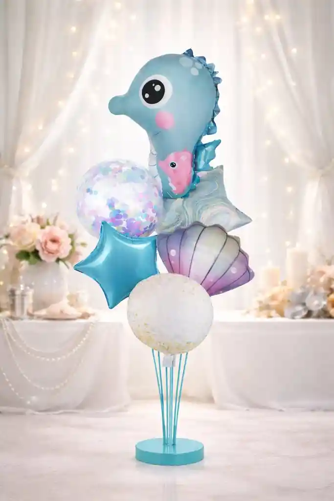 Decora tus celebraciones con este encantador set de Globos Metalizados Caballito de mar X6 Unidades, con diseño colorido. Ideal para fiestas temáticas, cumpleaños y eventos infantiles. Por tu Compra llevas: •1 Globo Caballito de Mar Azul 63x53 cm •2 Globos Concha de mar 53x53cm •2 Globos Estrella 45x45 CM •1 Globo Circular 45x45 CM IMPORTANTE! TENER EN CUENTA: •Los globos vienen desiflados Globos metalizados con garantía (antes del inflado) •La garantía aplica únicamente si el globo presenta un defecto visible antes de ser inflado, como: •Sellado defectuoso. •Orificios visibles sin haber sido manipulado. •Falla evidente en la unión del material (únicamente sin inflar). •El globo debe ser entregado en las mismas condiciones en que fue recibido: sin inflar, limpio y sin señales de manipulación. ❌ Globos sin garantía (después del inflado o manipulación) •Una vez el globo se infla pierde garantía, ya que el 99% de rupturas ocurre por factores ajenos al fabricante: •Exceso de presión o tipo de bomba utilizado. •Sobreinflado. •Cambios de temperatura. •Manipulación indebida, arrugas extremas o rasgaduras. •Contacto con superficies calientes, puntiagudas o abrasivas. •Intentos de reinflado o modificación del globo. •Los globos arrugados, reventados, rasgados o perforados después del inflado no tienen garantía.