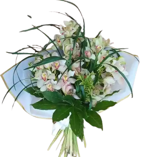 Contiene: Un hermoso bouquet de 4 varas de orquidea con follajes, incliye decoración y tarjeta personalizada. Sorprende con un arreglo floral lleno de distinción y sofisticación. Este hermoso bouquet está compuesto por 4 varas de orquídea, símbolo de amor profundo, admiración y belleza duradera, acompañadas de delicados follajes que aportan armonía y frescura natural.