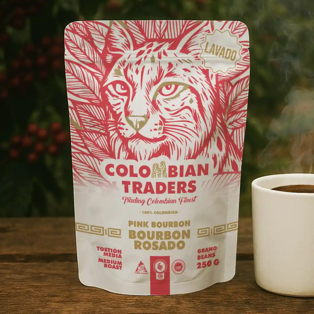 Bourbon Rosado Lavado - Buenavista, Quindío Descubre la elegancia de nuestro Bourbon Rosado, cultivado a 1,800 m.s.n.m. en Buenavista. Su doble fermentación extendida intensifica sus notas de almendras achocolatadas, amaretto y delicadas notas florales, con un residual suave a vainilla negra. Una experiencia única en cada sorbo.