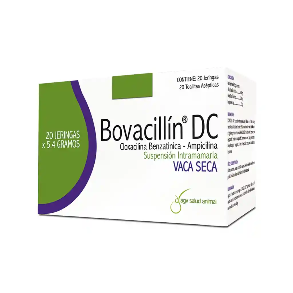 La protección completa para una lactancia completa Protección por 8 semanas Indicaciones En vacas para el tratamiento y control de mastitis en período seco producido por: Streptococcus agalactiae, Streptococcus disgalactiae, Staphylococcus aureus, Corynebacterium pyogenes, Escherichia coli. Tiempo de Retiro La leche de los animales tratados no debe destinarse para consumo humano hasta 96 horas después de ocurrido el parto. Los animales destinados para consumo humano solo podrán sacrificarse 28 días después de finalizado el tratamiento. PRESENTACIÓN: 1 Jeringa x 5.4 Gr