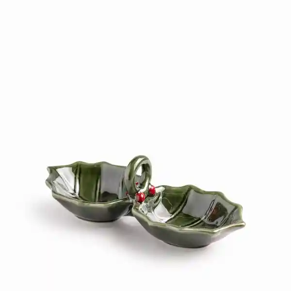 Este Tazón de Cerámica Con Forma de Hoja y Dos Espacios es Ideal Para Tus Celebraciones Navideñas. Cada Compartimento Tiene Una Capacidad de 150 mL Perfecto Para Servir Frutos Secos y Salsas Realzando la Decoración de tu Mesa Con un Toque Natural y Único.