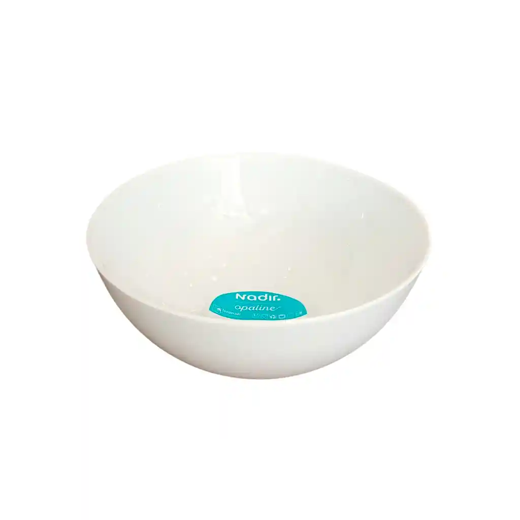Fabricado en vitrocerámica de la línea Nadir Opaline, ofreciendo una durabilidad superior frente a golpes y desportilladuras. Tamaño versátil ideal para servir cereales, sopas, ensaladas individuales, pastas o guarniciones. Acabado en color blanco puro con superficie lisa y brillante que aporta elegancia a cualquier mesa. Su material no poroso evita la absorción de olores, sabores y manchas, asegurando una limpieza profunda. Diseñado para ser utilizado con total seguridad en microondas para calentar tus alimentos directamente. Soporta cambios de temperatura moderados y es apto para lavado frecuente en lavavajillas sin perder su brillo.. Más liviano que la cerámica tradicional, lo que facilita su manipulación diaria en la cocina o el comedor. Su forma redondeada permite un apilado perfecto, optimizando el espacio en tus alacenas o estantes. Producto original de Nadir, marca líder reconocida por la excelencia en sus artículos de mesa. Se entrega en un empaque protegido para asegurar que la pieza llegue en perfectas condiciones hasta la puerta de tu hogar.. Estos productos han sido ambientados, los accesorios adicionales no están incluidos y su color puede variar por la luz.. . . .