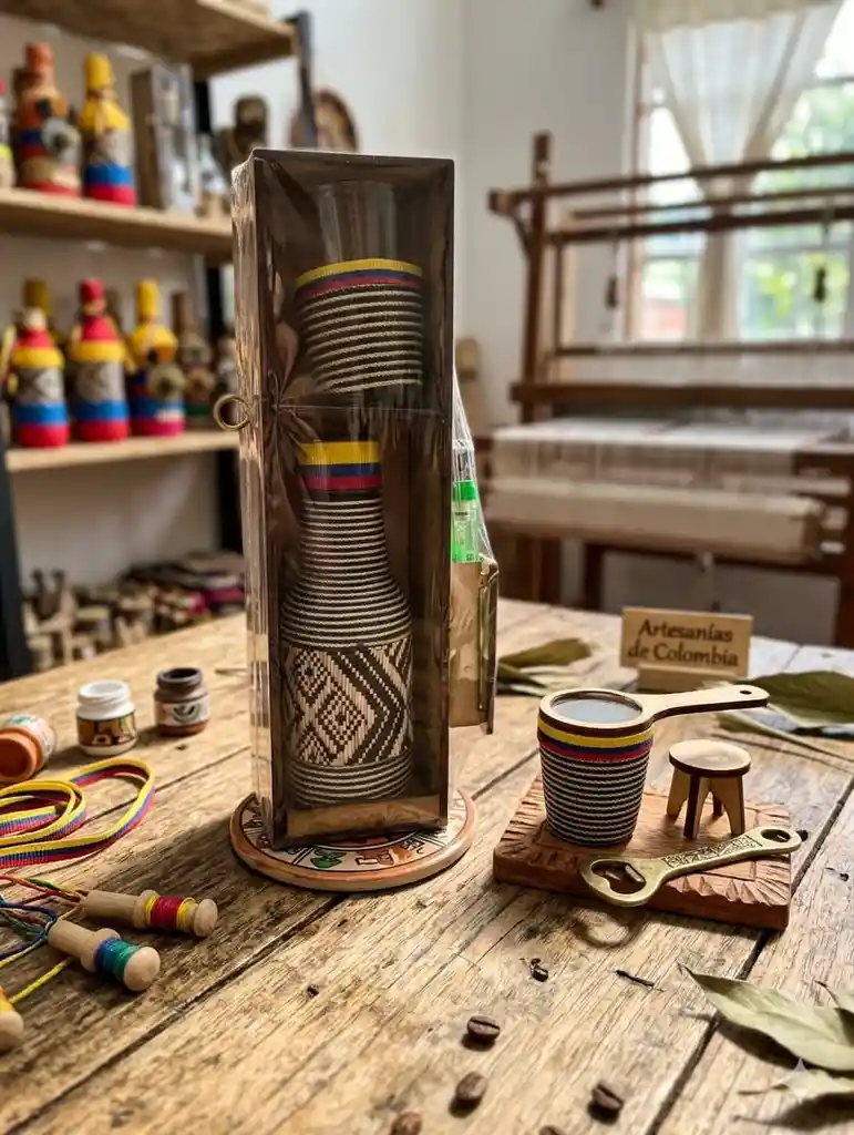 Cajita con botella, copita, destapador y mechero. ideal para dar un presente bien tipico