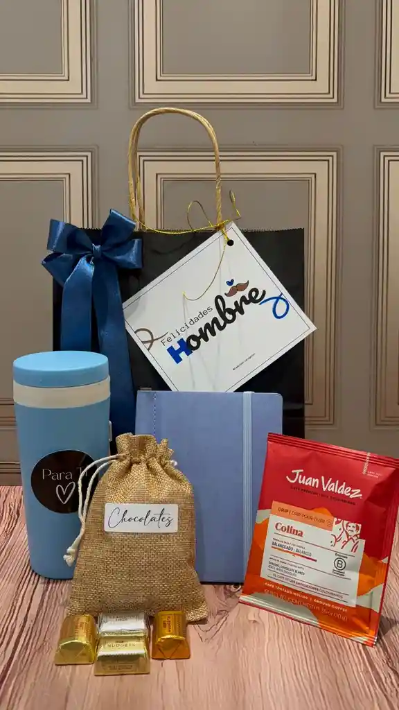 Gracias por confiar en nosotros para realizar tu compra. Hombre encantador Contiene, Mini Agenda , con Bolígrafo Chocolates Nuggets Hersheys Termo Drip Cafe Juan Valdez Bolsa decorativa. Tarjeta según la ocasión 1. Todos nuestros detalles se acomodan al motivo que desees solo indicarlo en el Chat de Rappi (Ejemplo cumpleaños, Aniversario, Dama, Caballero etc, esta información es super importante para nosotros) 2. Si deseas una tarjeta personaliza por ti, escríbenos al whassap 3123501815 antes de realizar tu compra, de lo contrario tu tarjeta sera personalizada con los motivos que dispone la tienda, Te invitamos a que nos sigas en nuestras redes Instagram @ladulceriaregalos.