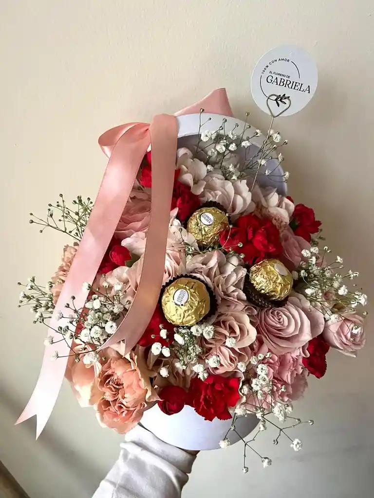 Caja floral diversa grande en tamaño 23 cm. (Chocolateria por separado)