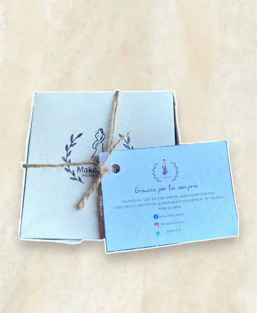 Box -Makadamia , incluye 3 accesorios Collar , Topitos y Pulsera / Material Cover Gold