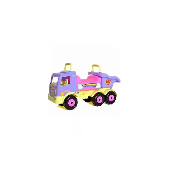 Volqueta Boy Toys Truck Niña Incluye Stickers Para Personalizarlo. Cabina Estática Con Manija de Agarre Para Que la Pequeña se Sostenga Firmemente. Volco Inclinable Con Manija de Agarre. Asiento Amplio y Cómodo. Ayuda al Desarrollo de Las Habilidades Motrices Colores: Rosa Morado y Amarillo Claro